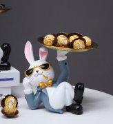 创意动物兔子树脂摆件家具客厅工艺品玄关钥匙轻奢收纳托盘装饰品