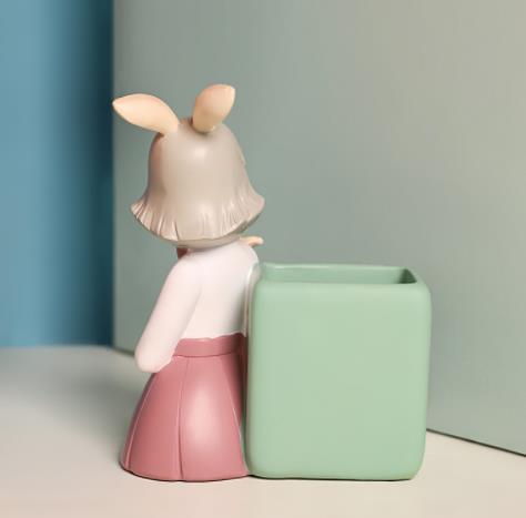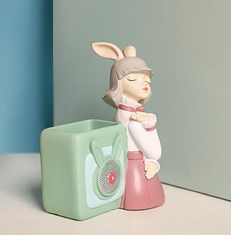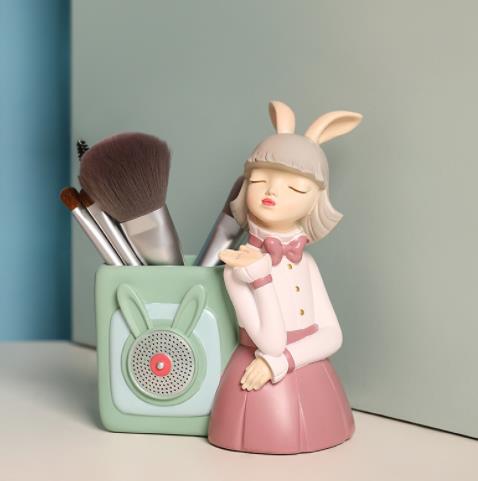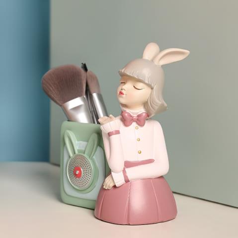 小清新兔女孩创意笔筒梳妆台化妆笔少女房间装饰树脂工艺品小摆件