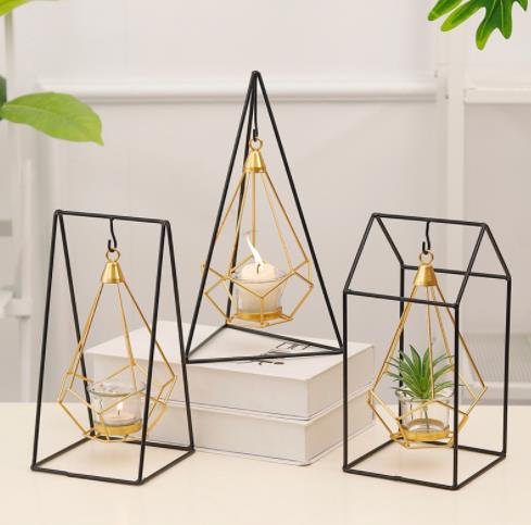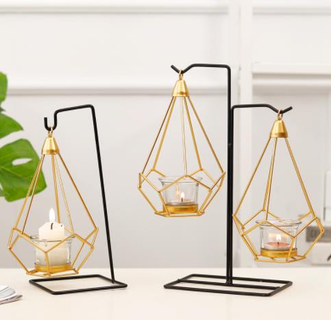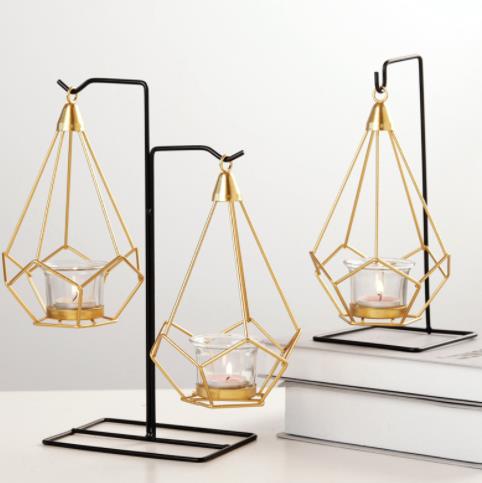 北欧ins铁艺可悬挂金色吊立烛台 家居婚庆道具装饰金属工艺品