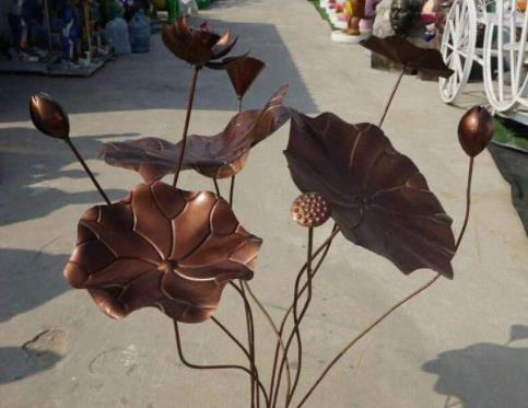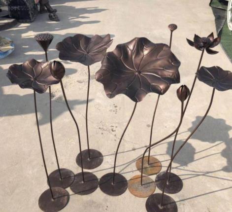 荷花雕塑制作 金属荷花工艺品 新款铁艺荷花荷叶金属工艺品