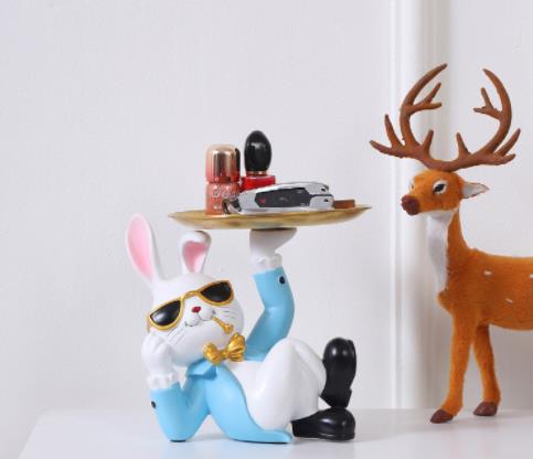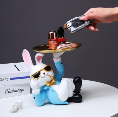 创意动物兔子树脂摆件家具客厅工艺品玄关钥匙轻奢收纳托盘装饰品